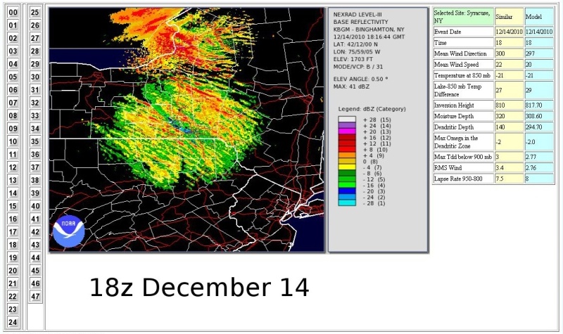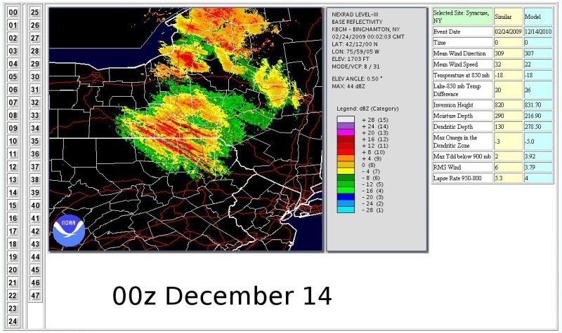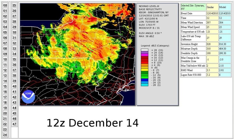 Checklist results - December 14Notes:Similar historical events identified by the checklist indicated multi-bands of lake effect snow across central New York and northeast Pennsylvania, however the coverage was not as widespread and the intensity was not as great as what was indicated on the 6th and 7th.